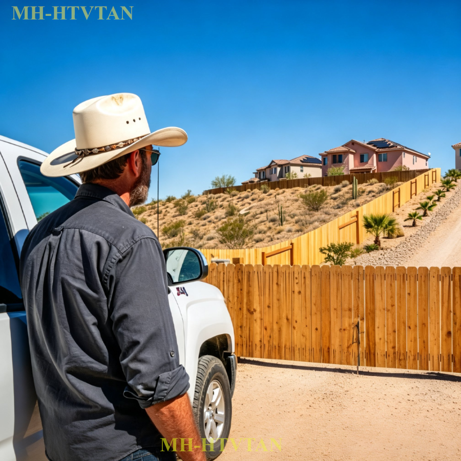 A flash of wood. A shape that didn’t belong. At first, I thought it was a mirage, the kind you get after driving too long in heat shimmer. But it wasn’t. A fence. A new one. Tall, fresh-cut cedar running where my old split-rail fence had been. And behind it, rooftops. Three of them. Fresh stucco, pastel paint, tile roofs gleaming like they had been imported from Scottsdale.
